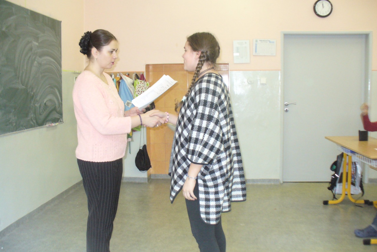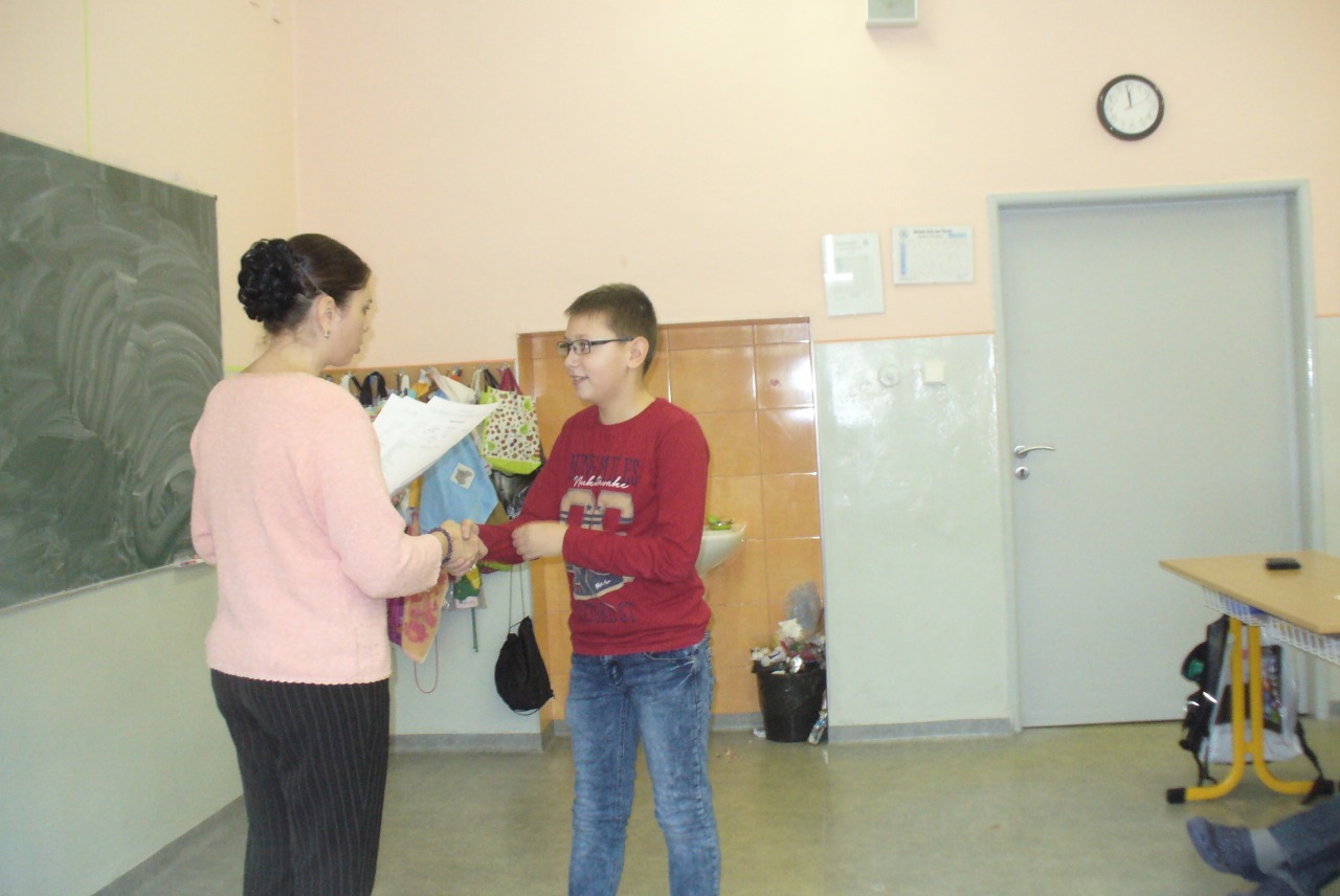 Dňa 29.1.2016 nám tr.učiteľka rozdávala na 5.vyučovacej hodine polročé výpisy, na ktorých boli zhodnotené naše vedomosti a správanie.