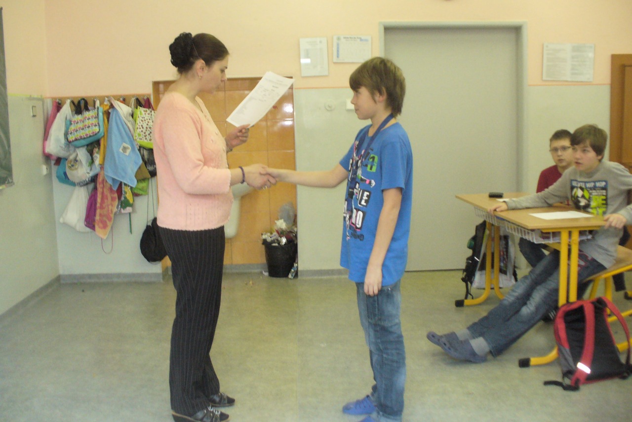Medzi nami sú žiaci, ktorí mali na vysvedčení samé jednotky - je ich 9, potom k týmto vyznamenaným žiakom sa zaradili ešte dvaja žiaci s niekoľkými dvojkami a ostatní 7 prospeli. Musíme však povedať, že svoje výsledky si musia zlepšiť 3 žiaci, aby na konci šk.roka patrili tiež k tým prospievajúcim.